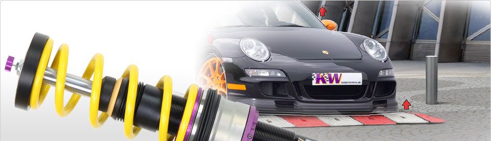 Im Gegensatz zu eloxierten Verstellfedertellern aus Aluminium wird bei KW ein Gewindering aus einem widerstandsfähigen Polyamidverbundwerkstoff mit Edelstahleinlage verwendet. Dadurch wird selbst durch die Einwirkung von Schmutzpartikeln wie Bremsstaub oder Sandkörner der Polyamid-Gewindering nicht beschädigt.