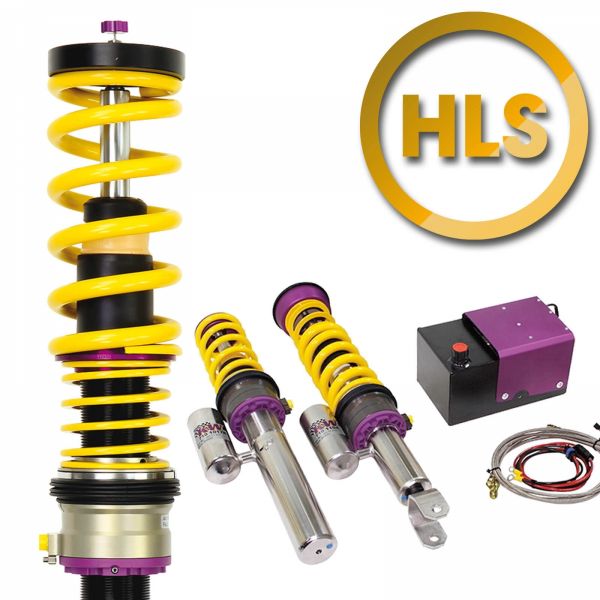 Damit Showfahrzeuge problemlos und komfortabel zu Tuningtreffen reisen können. Zulässige Alternative zu Systemen mit extremer Tieferlegung, die bei Fahrdynamik und Sicherheit nicht mithalten können. Nachrüstbar für jedes KW Gewindefahrwerk. Im Lieferumfang: Vier Hydraulikzylinder, eine Pumpenbaugruppe mit Steuergerät, Hydraulikleitungen und Kabelsatz mit CAN-Anbindung. Der HLS Zylinder mit 30 mm Hub senkt das Fahrzeug bei Schrittgeschwindigkeit auf Knopfdruck ab. Über 25 km/h hebt das System das Fahrzeug automatisch an und gewährleistet die Funktionen eines KW Gewindefahrwerks. Die Hydraulikzylinder sind im ausgefahrenen Zustand starr und haben keine Auswirkung auf das Feder- und Dämpfungsverhalten.